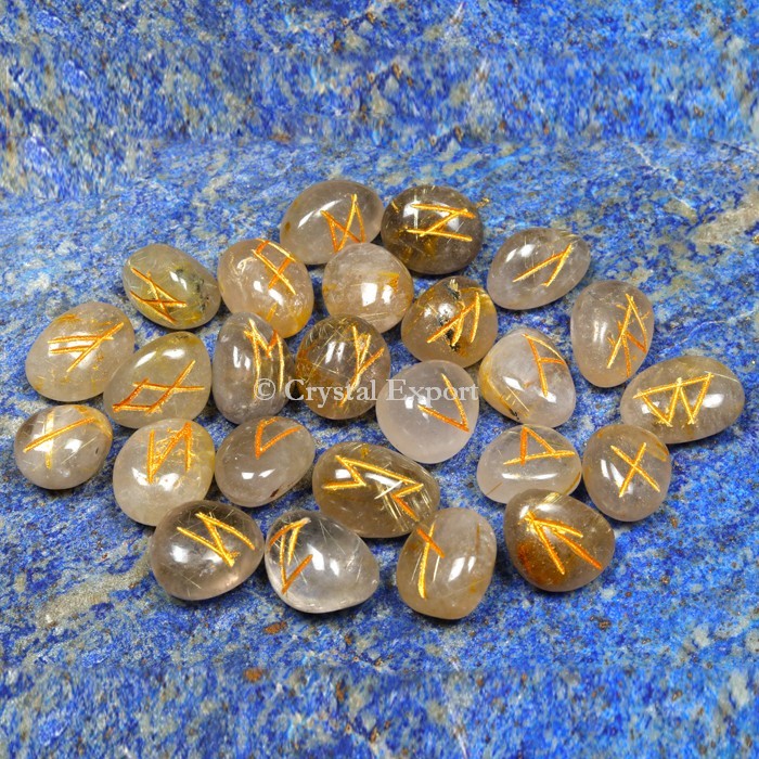 Golden Rutile Tumbled Rune Set stimulates creativity, and ability to manifest what you desire in your life, through the power of intention. The extraordinary energy of the Golden Rutile within the stone, gives strength & courage to cope with major problems in life. It aids you to relieve anxiety, fear and phobias. Runes are the letters in a set of related alphabets known as runic alphabets, which were used to write various Germanic languages before the adoption of the Latin alphabet and for specialised purposes thereafter. Shop online now.