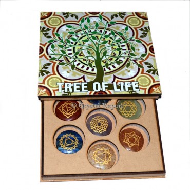 A tree of life is a mystical concept alluding to the inter-connectedness of all life on our planet. Chakras (or wheels) are points of energy running along our spine. There are 7 of these energy wheels, spinning in a clockwise motion. The spacing of Chakras matches the major nerve centers in the body. Place an order for Tree Of Life Printed Gift Box with 7 Chakra Disc Set today at Crystal Export. The Chakras are responsible for radiating life energy, Prana. According to the Vedas, chakras bear a direct influence on your ambitions and goals within the relationship. A blocked and disrupted chakra signals the onset of mental and spiritual health problems.